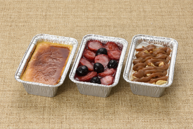 “プレーン”“苺とブルーベリー”“キャラメルとナッツ”の3種類のカタラーナが入ったセットです